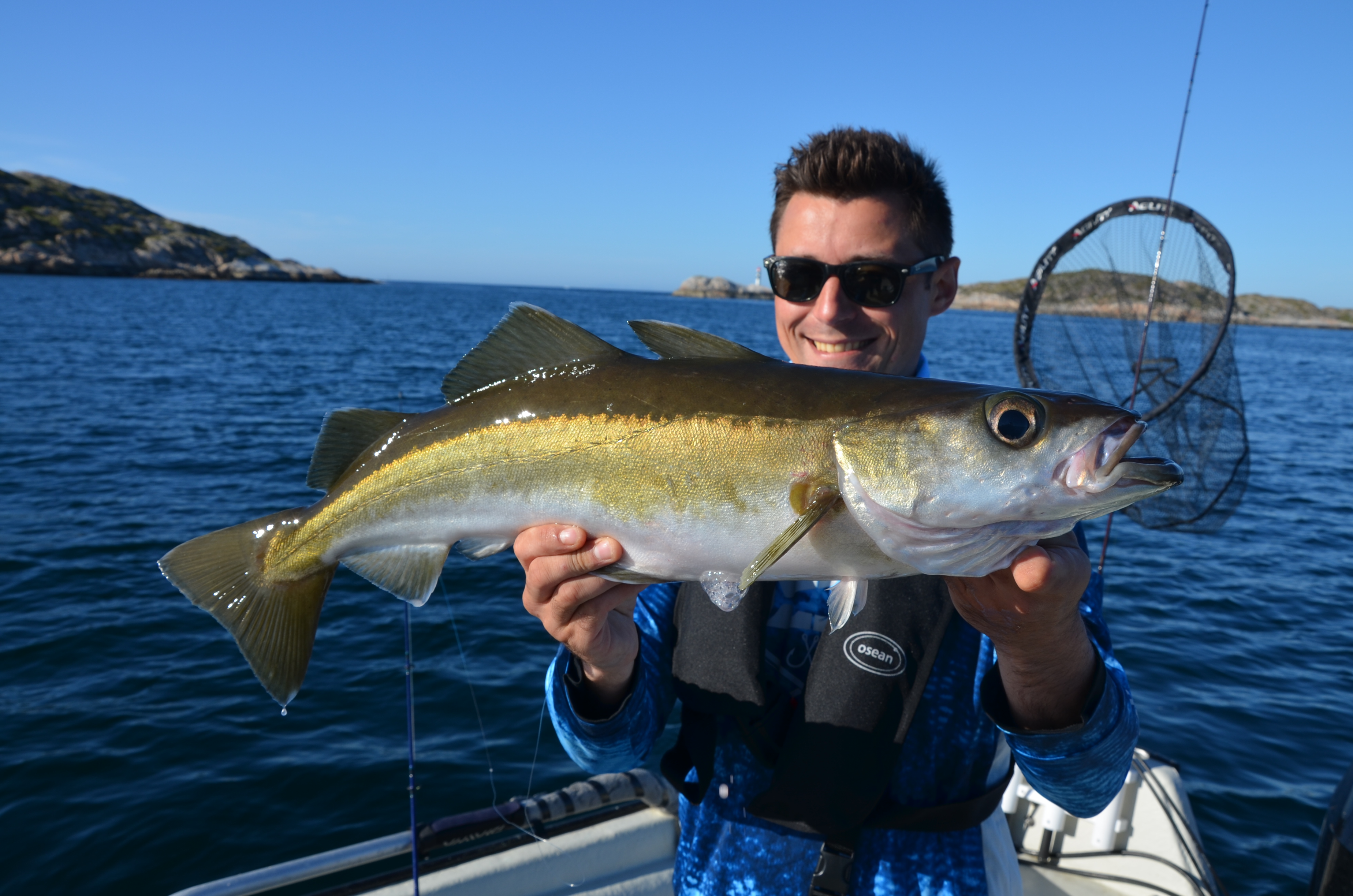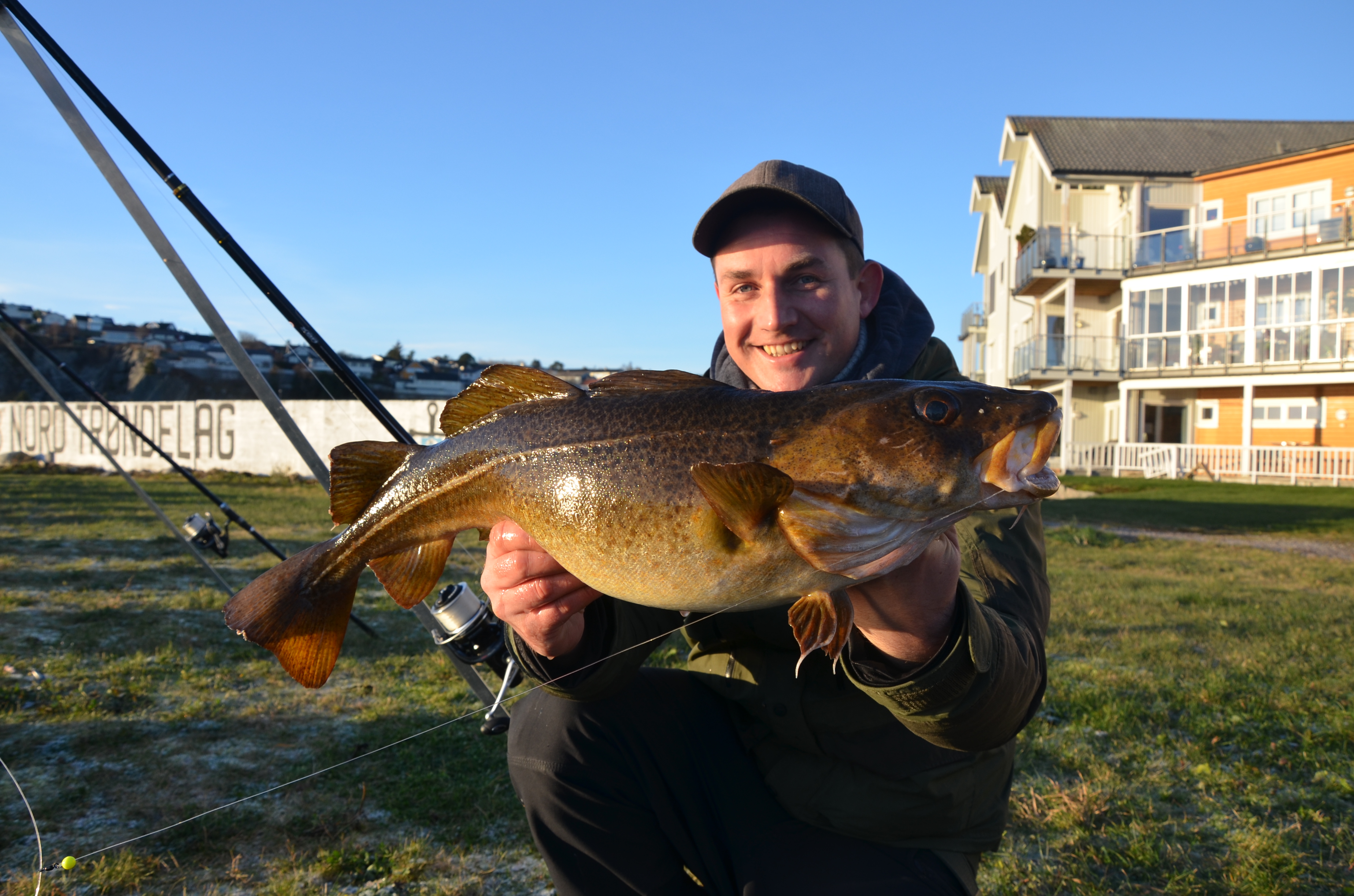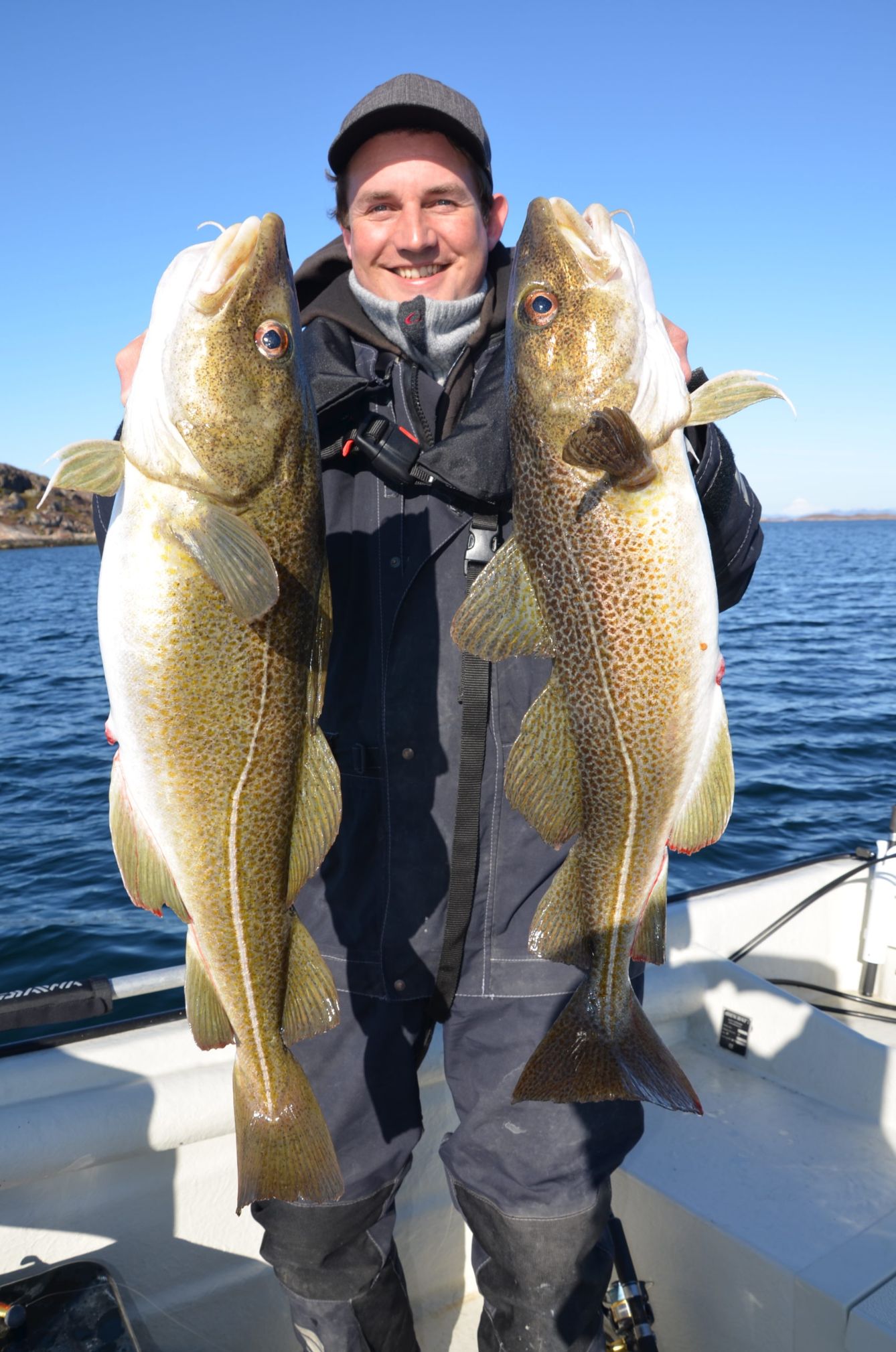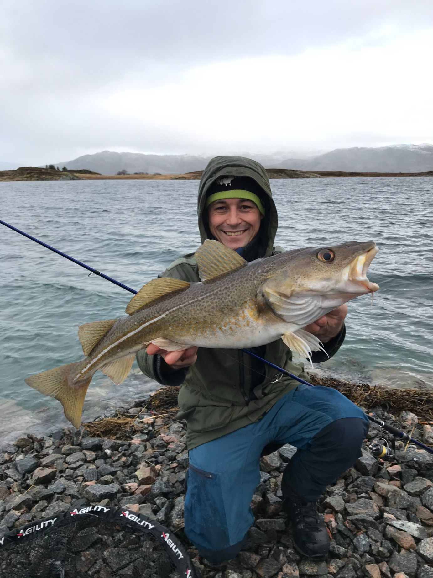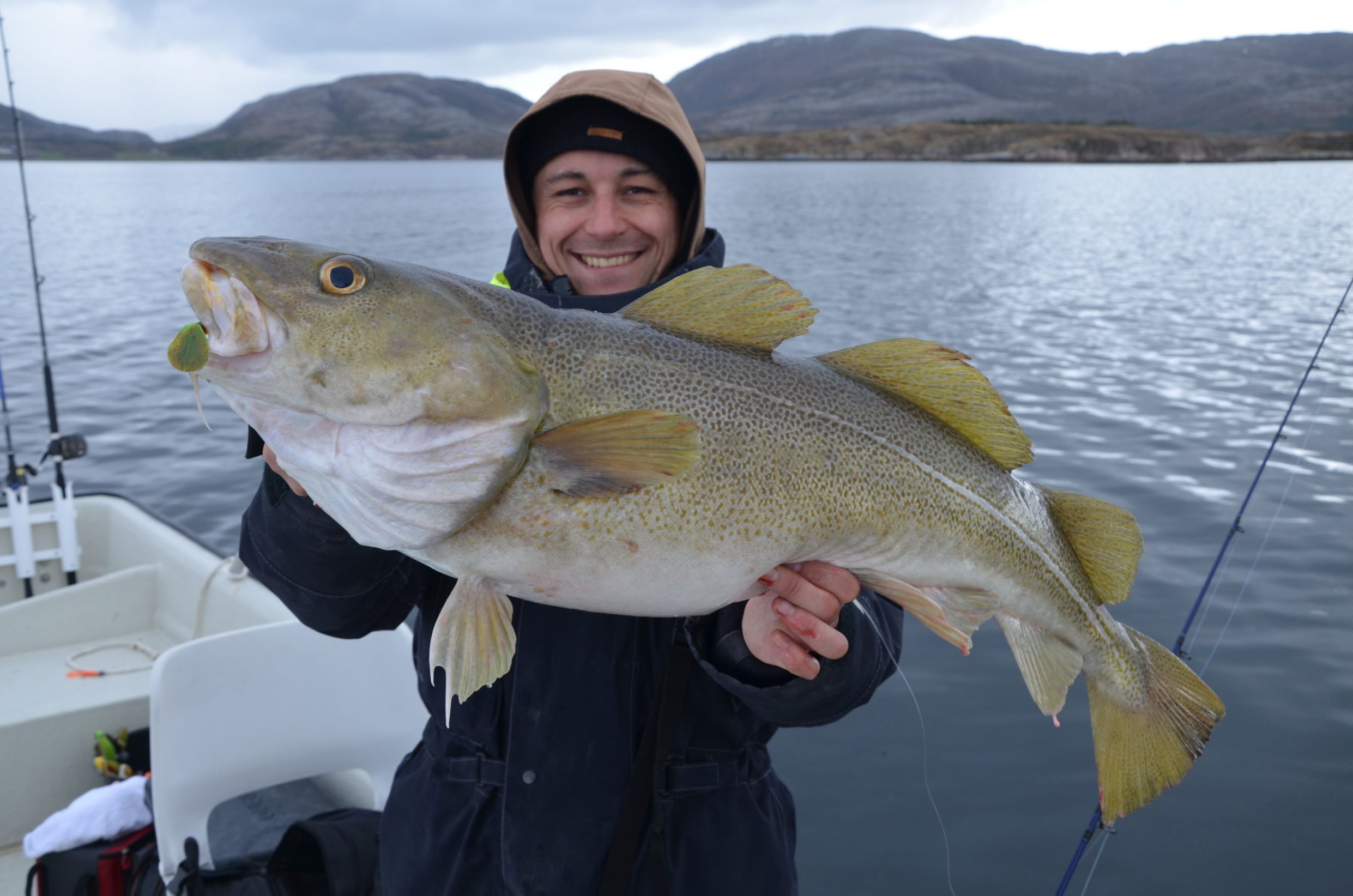 The shore fishing is almost undiscovered in this area, but in a few short sessions we had we were able to catch some very good fish, including a halibut of 60 + lbs! In early February many cod are migrating closer to the shore and into Nærøysundet. Sometimes even Skrei cod (big spawning cod) find their way into these waters. Very interesting times for the shore angler as the good fishing lasts till the end of May. September-November are very good months as well for any kind of species. We provide tripods, seatboxes, baitboxes, landing nets, gaffs, frozen baits etc. Just send us an E-Mail and ask us for a quote, if you are interested in trying the shore fishing here.
